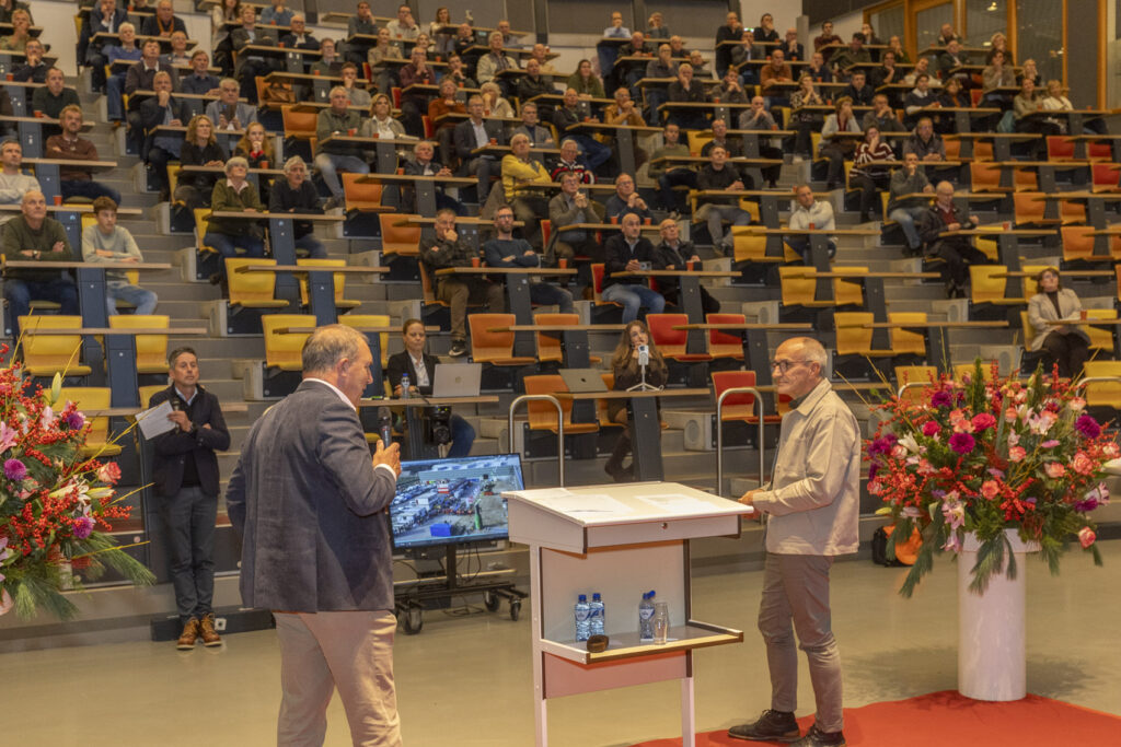 Aansluitend op de ledenvergadering werd in de afmijnzaal afscheid genomen van commercieel directeur Guus van Logtestijn. Guus werd overladen met de mooie woorden die passen bij 43 jaar trouwe dienst, waarin hij zich ontwikkelde van assistent-keurmeester tot commercieel directeur en uitgroeide tot een boegbeeld in de sector. Na enig tegenspartelen (‘hoeft niet’) nam hij uiteindelijk met trots en volledig terecht de gouden Plantion-speld in ontvangst.
