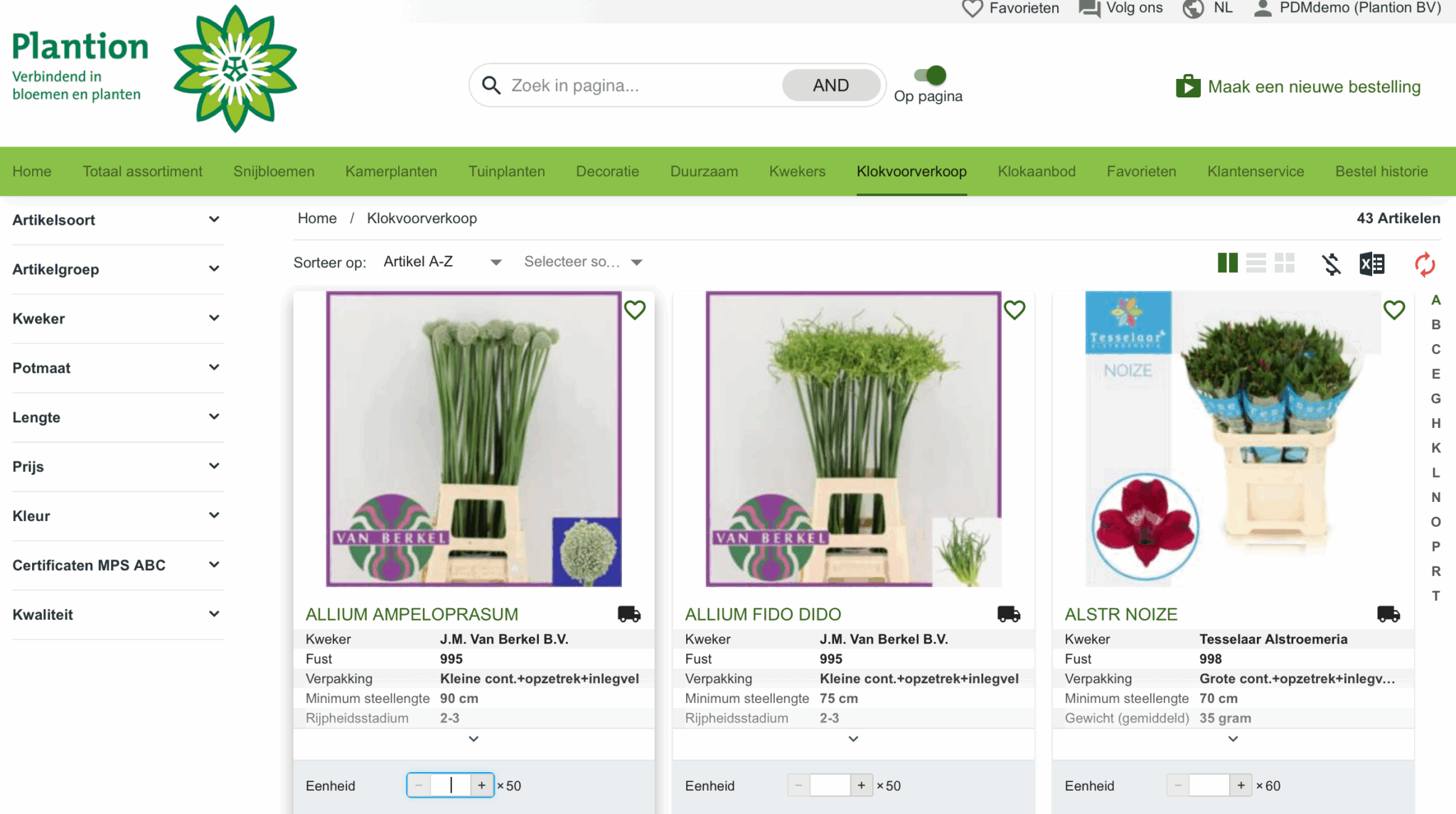 Voor jou als aanvoerder biedt de webshop van Plantion ook kansen. Naast jouw actuele klokaanvoer kunt je er ook jouw andere producten op plaatsen. Via de module Klok Voorverkoop kun je bovendien een gedeelte van jouw klokaanvoer al voorafgaand te koop aanbieden, tegen vaste prijzen.